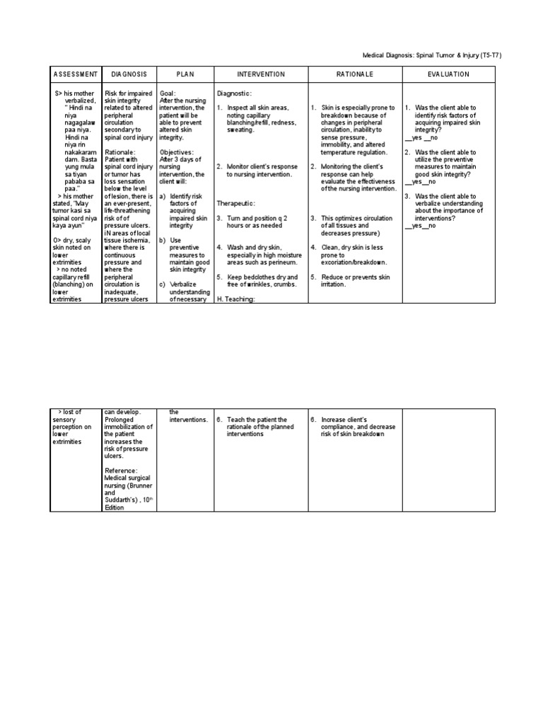 Impaired skin nursing intervention, noted color, turgor, comparative nursing intervention, may mga sugat ako. integrity related to the client will be able.
